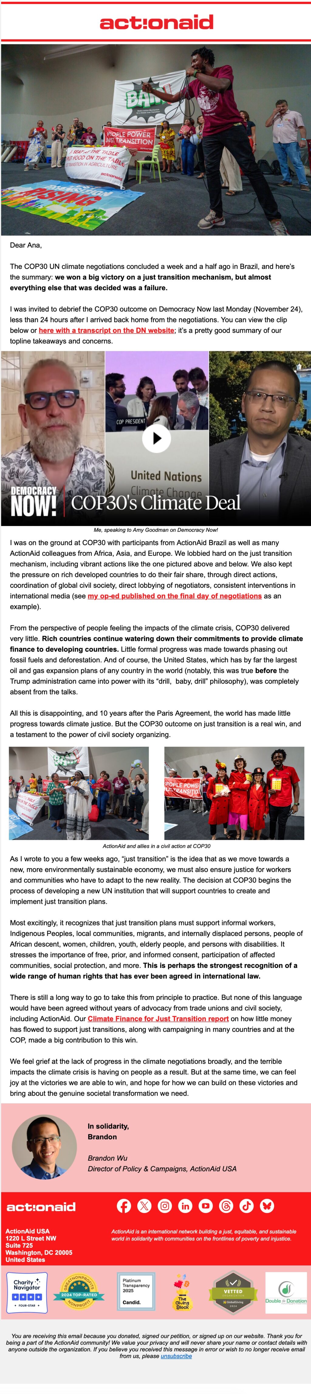 ENGAGEMENT ActionAid: COP30: Progress on a just transition, but wealthy nations still slow things down Donorli2 days ago